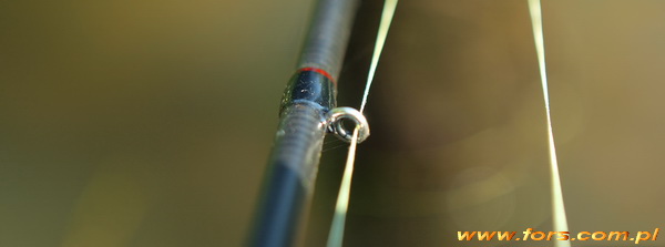 Blank uzbrojono w dziesięć przelotek Fuji Alconite K-Series, a więc jak już wiecie dość drobnych, o średnicach od 4 do 20 mm. Pierwsze trzy przelotki od strony kołowrotka są na wysokich stopkach, a kolejne siedem o średnicy 4 mm to praktycznie same kółka. Nie ma problemów z nadlewkami czy niedolakierowaniem, omotki z nici Gudebrod i lakier Trondak dają pożądany efekt wizualny.
